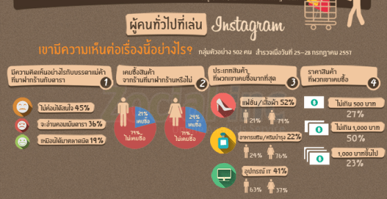 Zocialinc ได้สำรวจผู้ใช้ Instagram ได้มีมุมมองเกี่ยวกับกลุ่มคนโพสต์ comment ฝากร้านกับดารา ทาง Instagram (โดยสำรวจกลุ่มตัวอย่าง 502 คน เมื่อวันที่ 25 – 28 กรกฏาคม 2557 )ได้ผลสรุปดังนี้